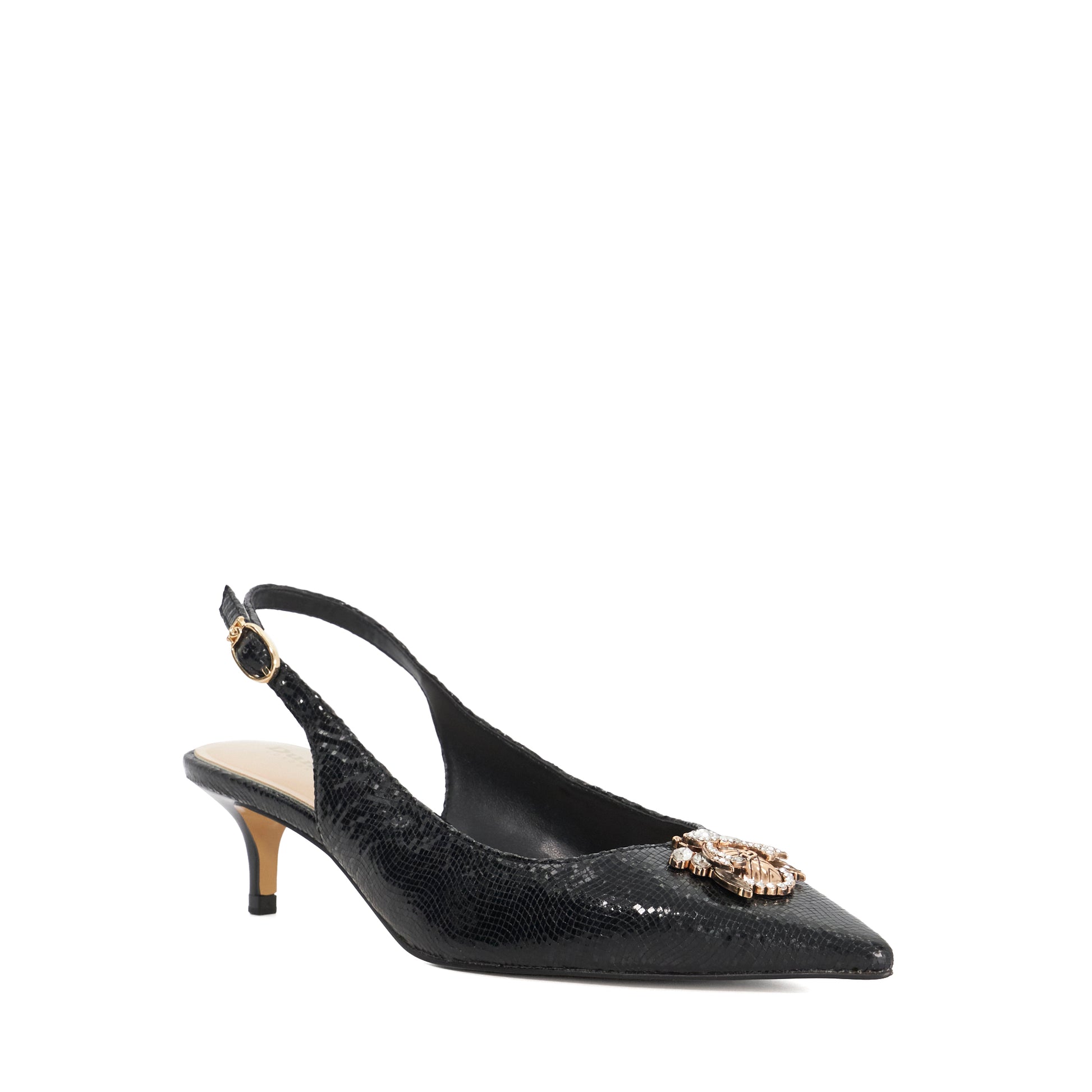 Keep it cute with Context, pretty slingbacks that you'll love to wear on evenings out and special occasions. Decorated with our signature Dune Bug charm, this style brings a whimsical touch to any outfit. The pointed toe adds a refined silhouette, while the kitten heel provides just the right amount of lift without compromising on comfort. Whether paired with a fitted midi dress or tailored trousers, these shoes are sure to keep you looking and feeling fabulous all night long.