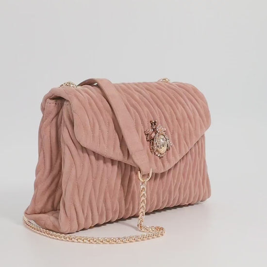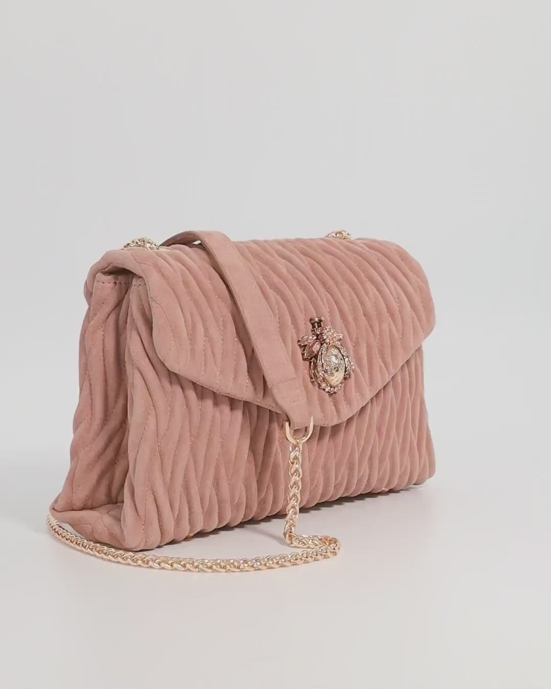 A must-have accessory that's both timeless and on-trend, Darling has been expertly crafted from beautifully soft suede in our new wave quilt. This versatile style can be worn cross body or as a shoulder profile and features our iconic jewelled Dune bug charm, which has been meticulously hand crafted with tonal gemstones to match the colour of the leather. Designed with an elegant leather and metal chain handle for ease of wear, this investment worthy bag is a forever style.