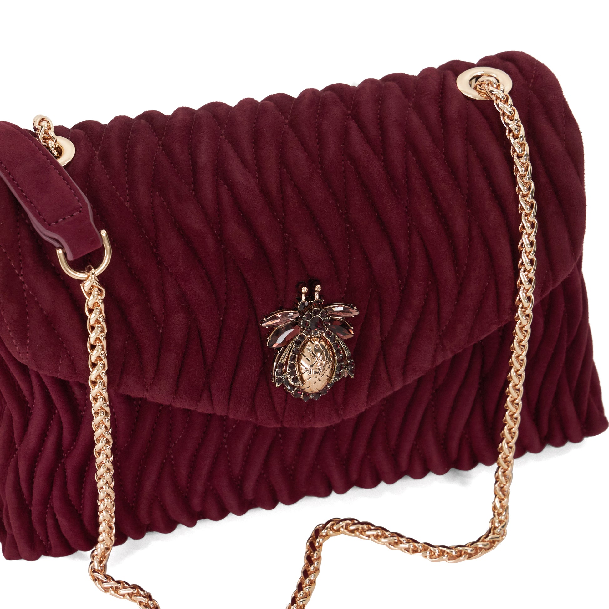 A must-have accessory that's both timeless and on-trend, Darling has been expertly crafted from beautifully soft suede in our new wave quilt. This versatile style can be worn cross body or as a shoulder profile and features our iconic jewelled Dune bug charm, which has been meticulously hand crafted with tonal gemstones to match the colour of the leather. Designed with an elegant leather and metal chain handle for ease of wear, this investment worthy bag is a forever style.