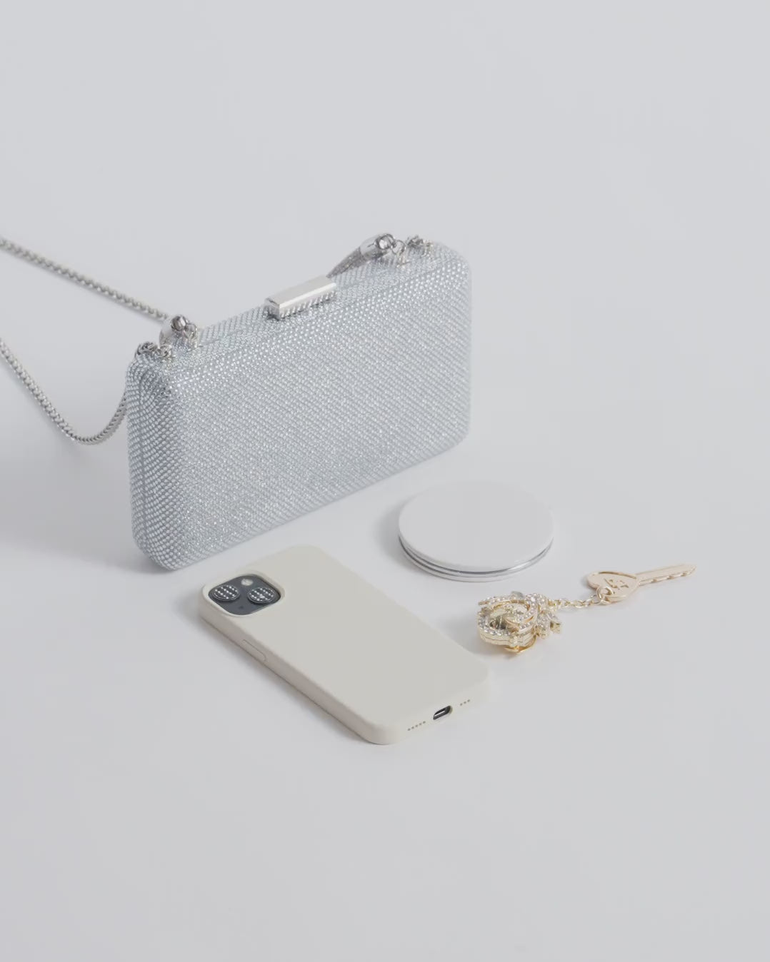 The Beaut clutch is a graceful fusion of craftsmanship and elegance. This structured bag is a signature Dune London style. A sparkling diamante-embellished top handle and ornate clasp adds a touch of glamour, making it the perfect accessory for refined occasions. Carry it as a classic clutch or attach the elegant chain strap to wear over the shoulder, making it the perfect companion for everything from garden parties to evening soirées.
